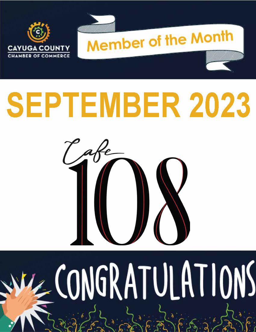 Thank you to the Cayuga County Chamber of Commerce for recognizing Cafe 108 and our contribution to the City of Auburn.